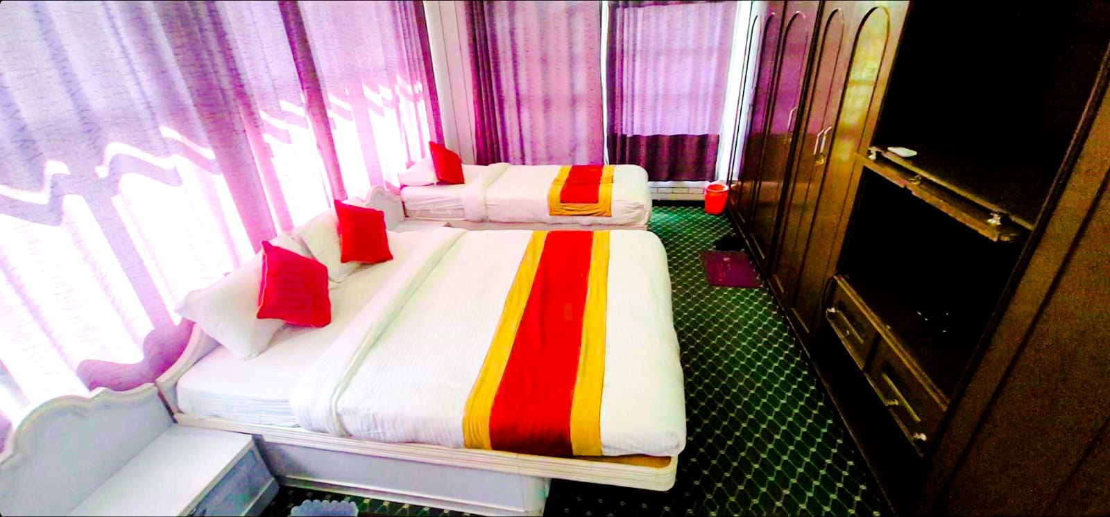 Our king size room provides views over gardens and Narayani river side view. Room includes Mini Bar, Morning Breakfast with Choice, Coffee, tea available , 2 minerals water, Lays and others chocolate items, Easy Access of Wifi, Laundry Services and welcome drinks (Tea, coffee or juice).